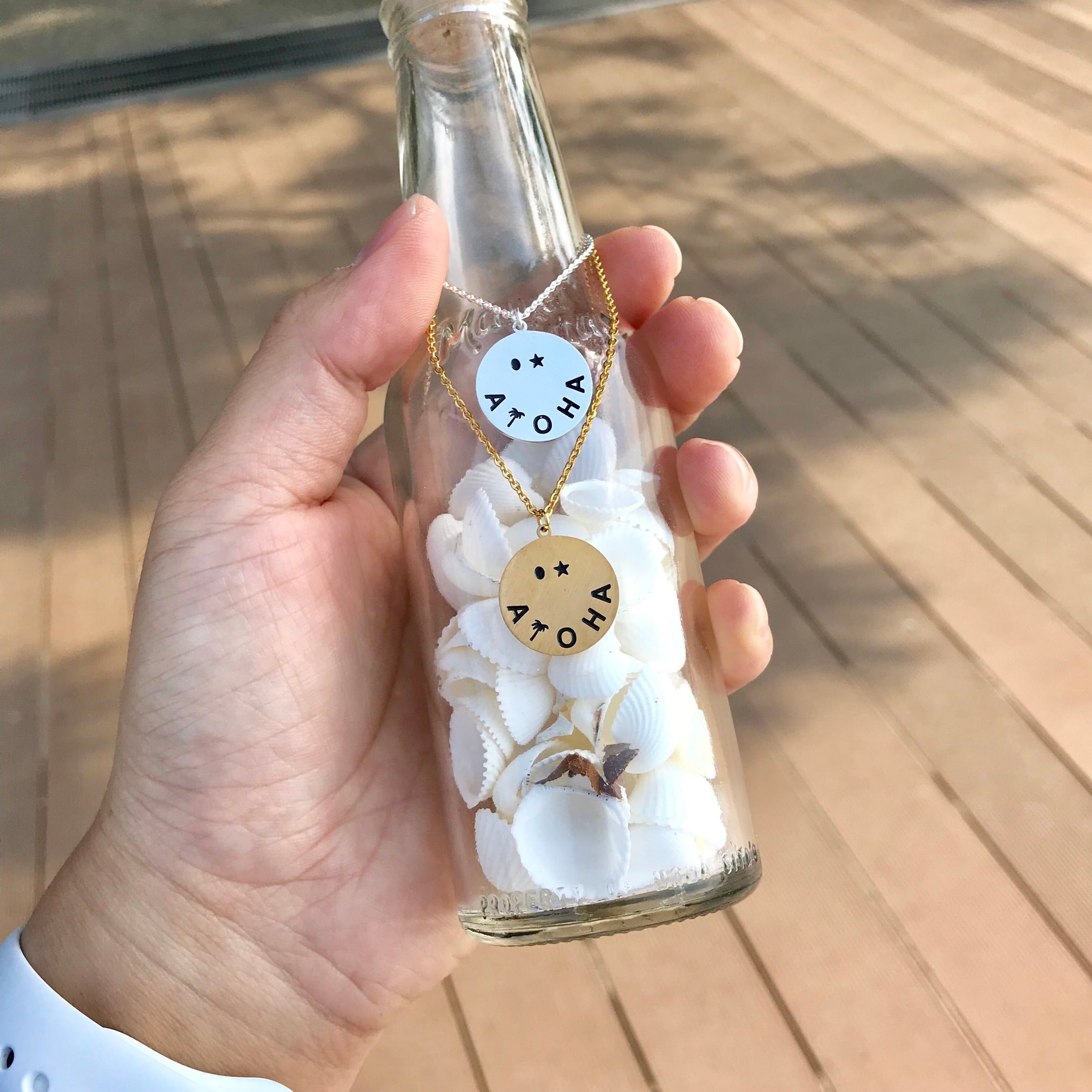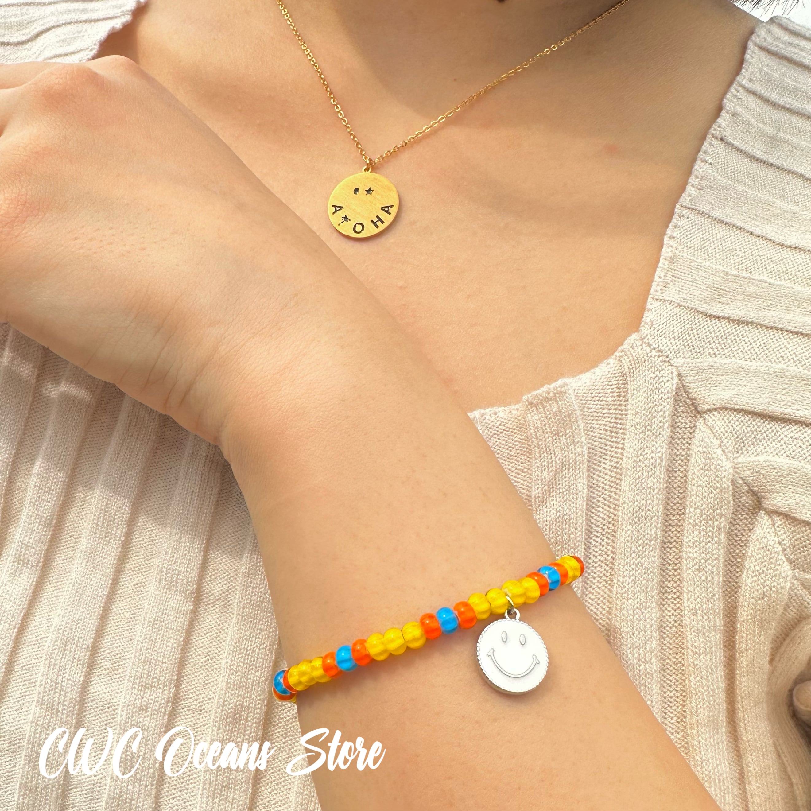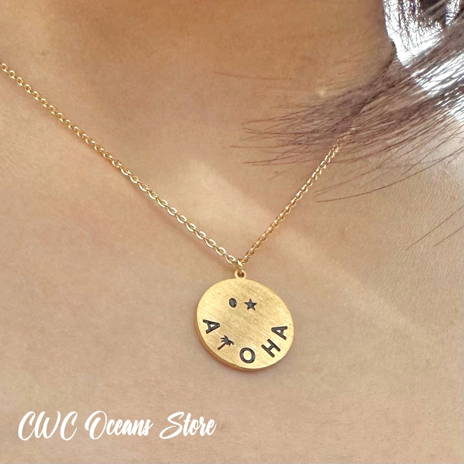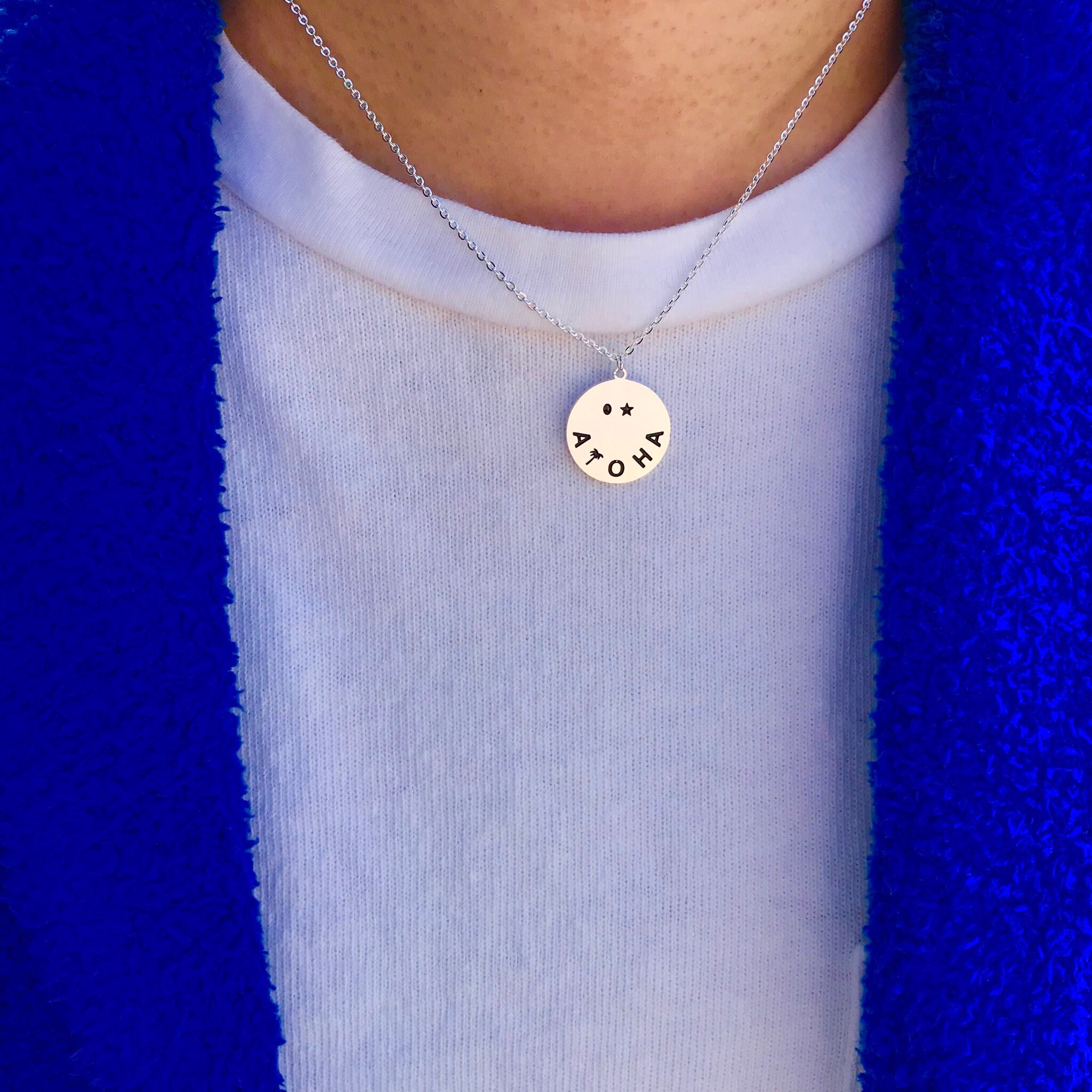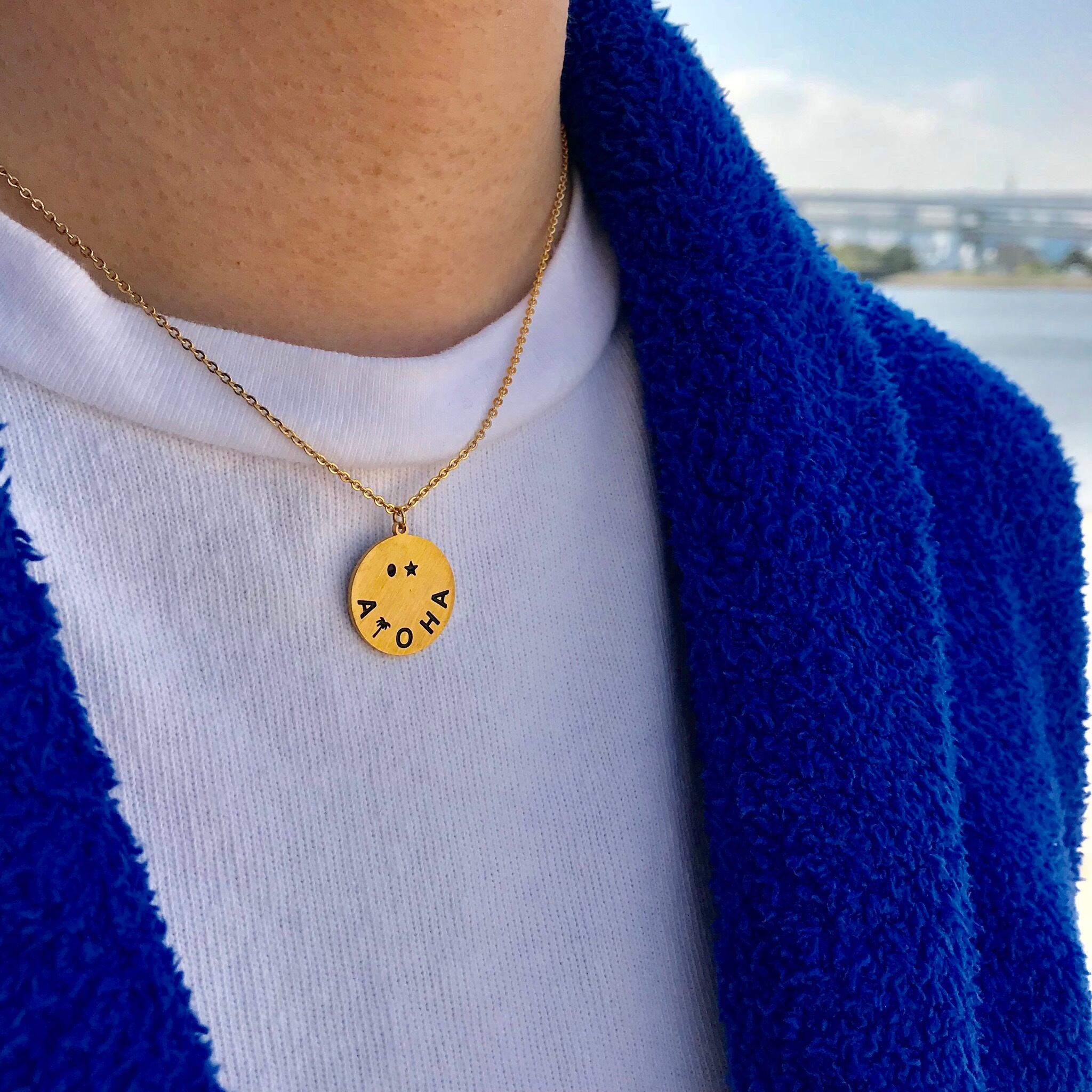 S.Steel Smile Aloha Coin Necklace