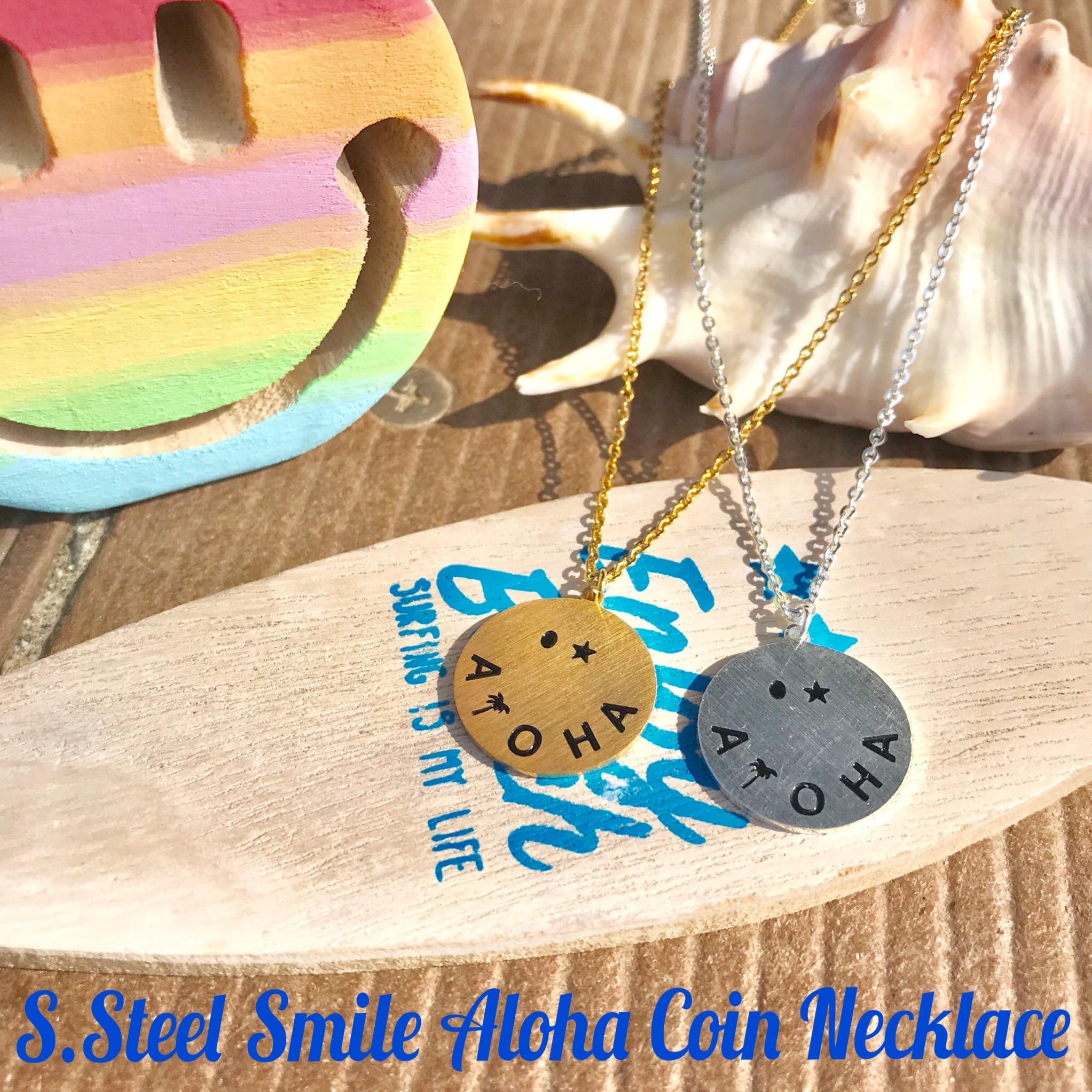 「ステンレス製スマイルアロハコインネックレス」です☆