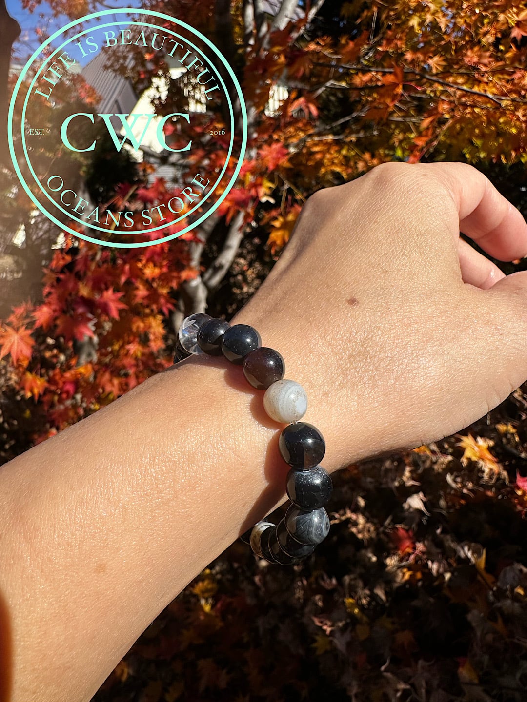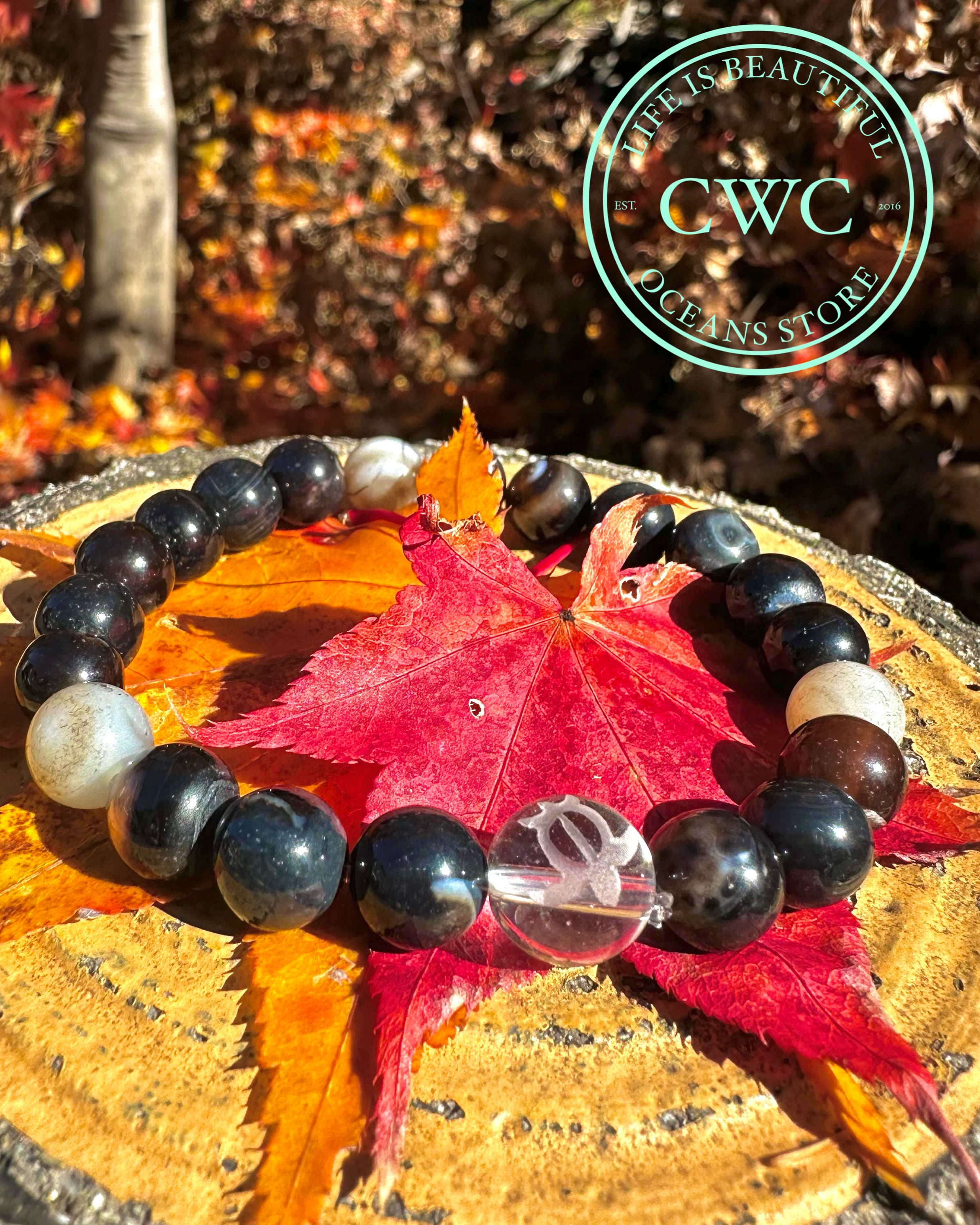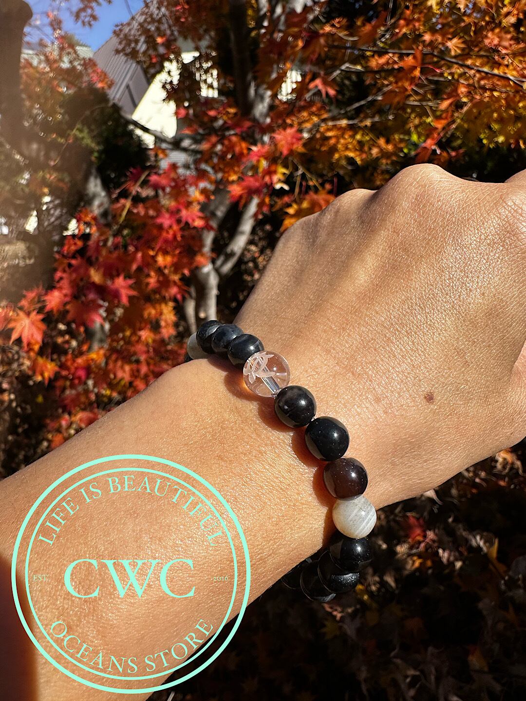 ★このブレスレットは、ハワイ島をイメージした美しいデザインで、火山灰を模した大地を表現しています!アイアゲートと水晶、そして聖なるホヌを用いたハンドメイドの特別なアイテムです╰(*´︶`*)╯それぞれの石が持つ力強さと神秘性が、あなたの日常に独自の魅力をプラスします。