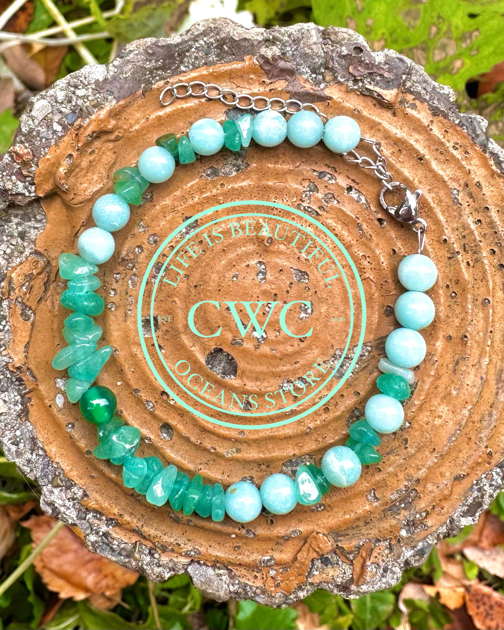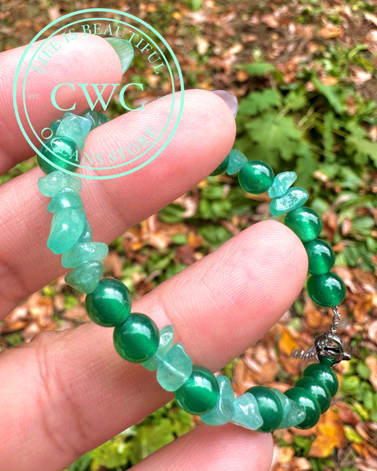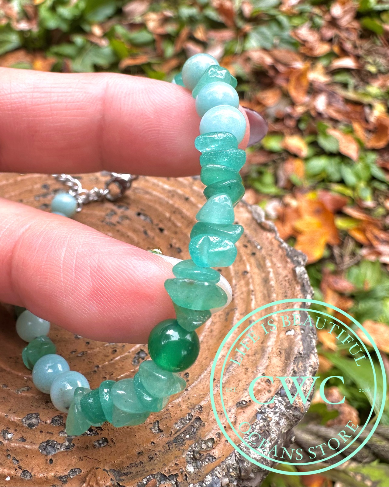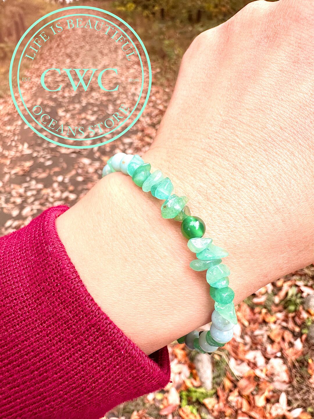 ★このブレスレットは、ハワイの椰子の木をイメージしたデザインで、アベンチュリンの天然石を使用し、ステンレス製のパーツで丁寧に仕上げられた特別なアイテムです!その美しい色合いと独特な輝きが、あなたの日常に心の安らぎを与えます╰(*´︶`*)╯アベンチュリンは幸運を呼ぶ石として知られ、ポジティブなエネルギーを引き出すサポートをしてくれるでしょう。