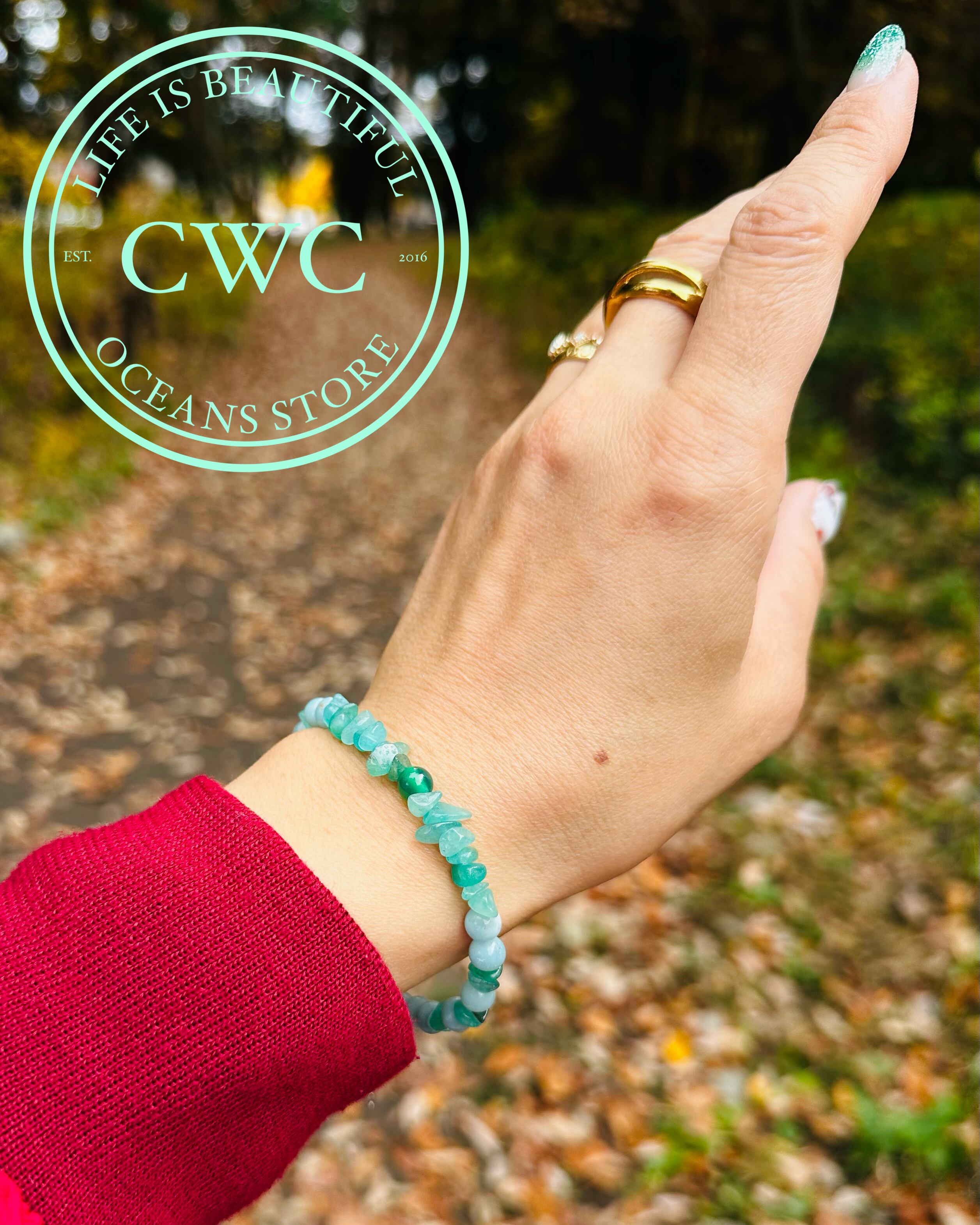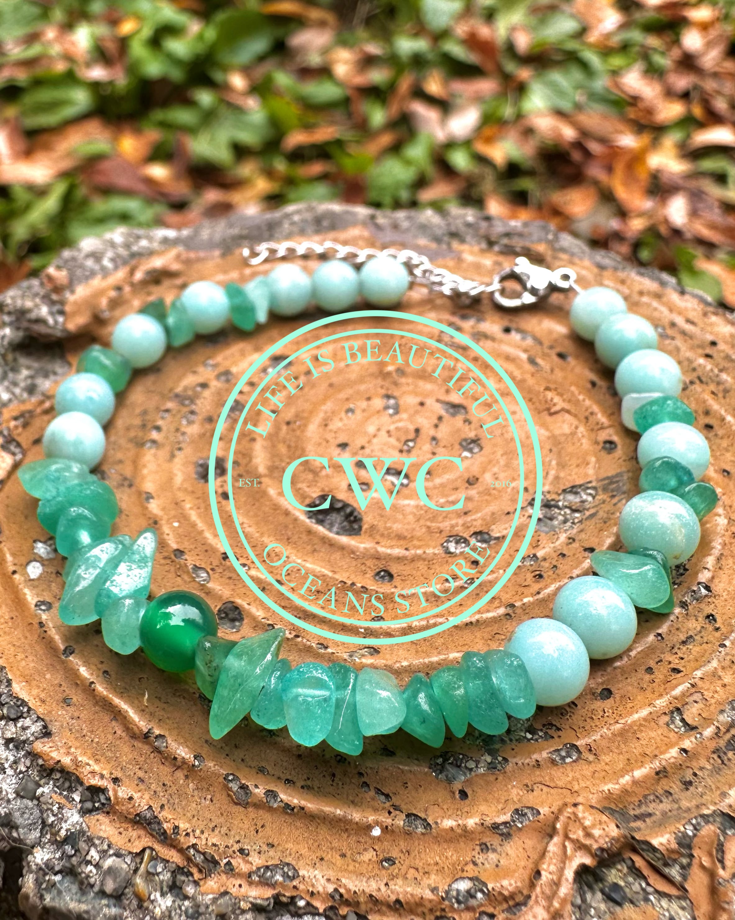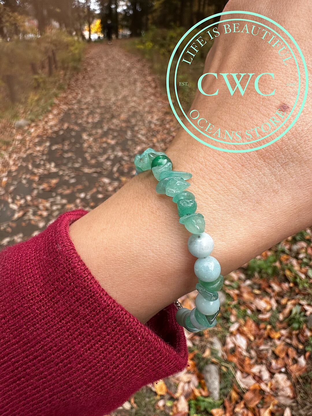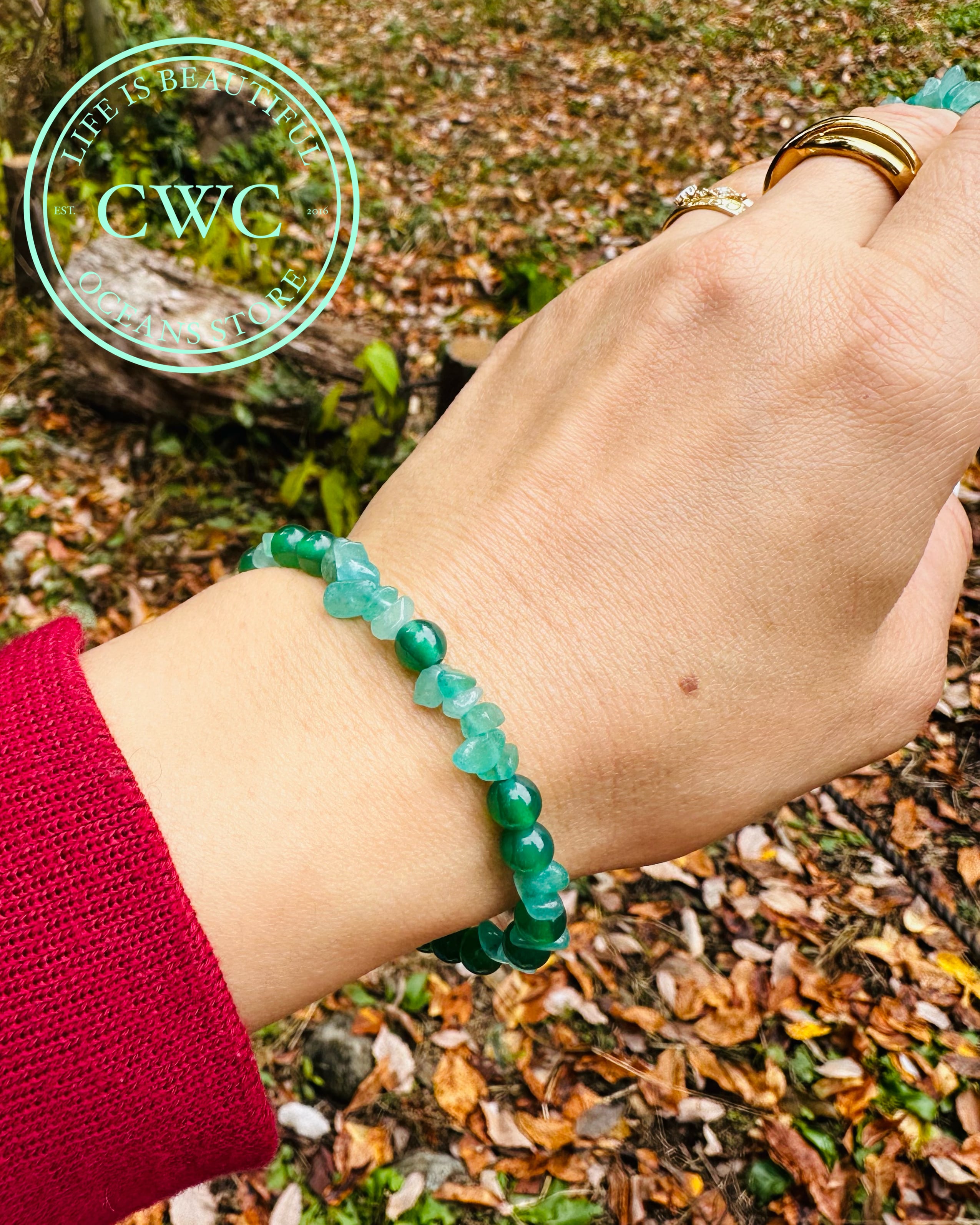 ★このブレスレットは、ハワイの椰子の木をイメージしたデザインで、アベンチュリンの天然石を使用し、ステンレス製のパーツで丁寧に仕上げられた特別なアイテムです!その美しい色合いと独特な輝きが、あなたの日常に心の安らぎを与えます╰(*´︶`*)╯アベンチュリンは幸運を呼ぶ石として知られ、ポジティブなエネルギーを引き出すサポートをしてくれるでしょう。