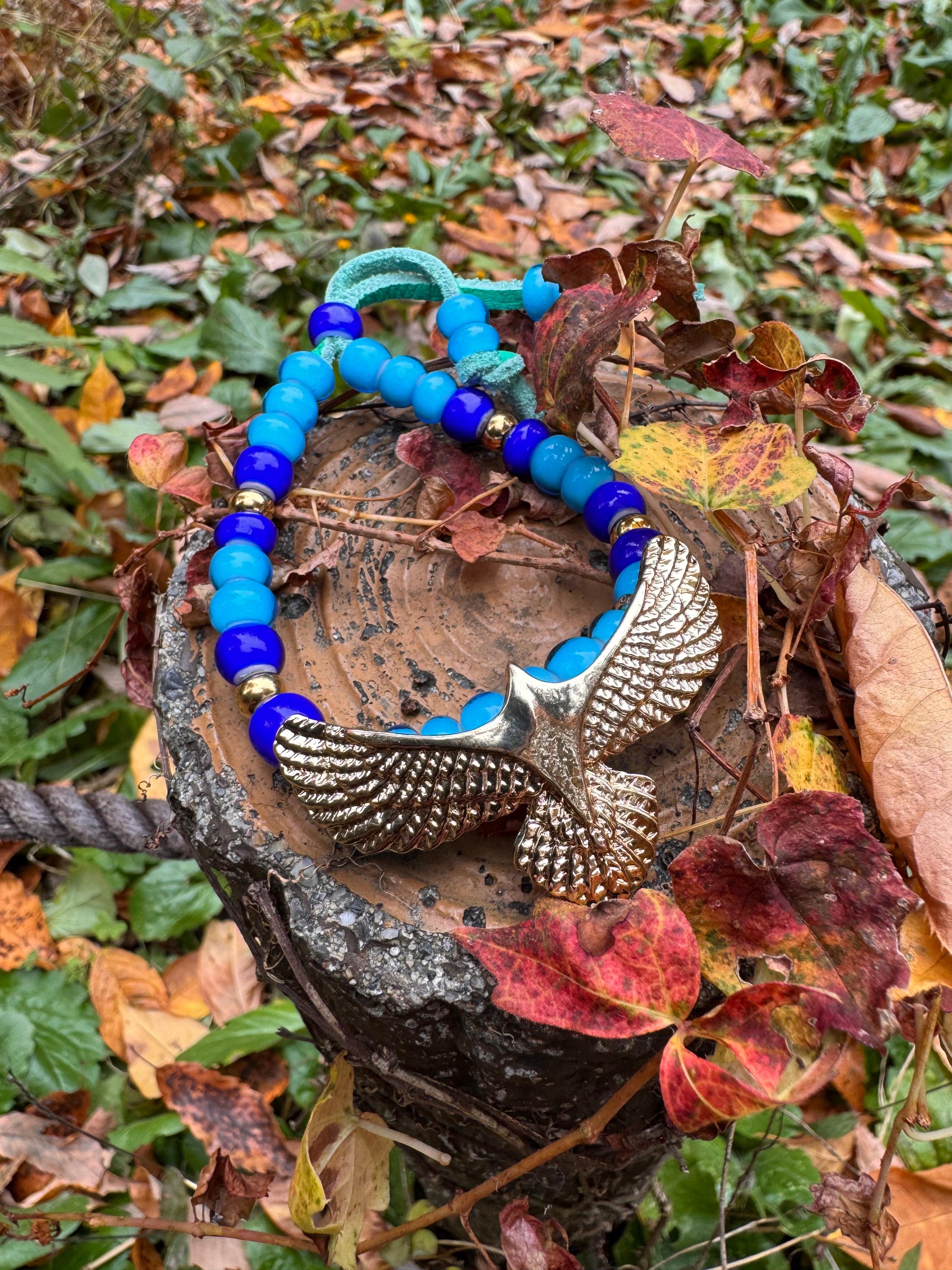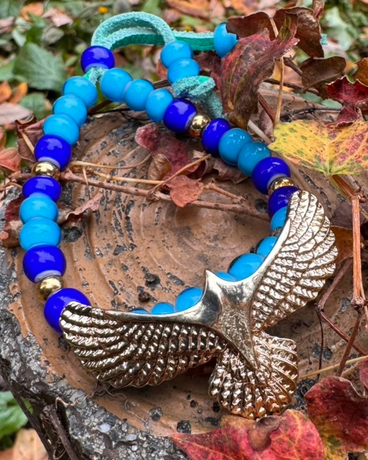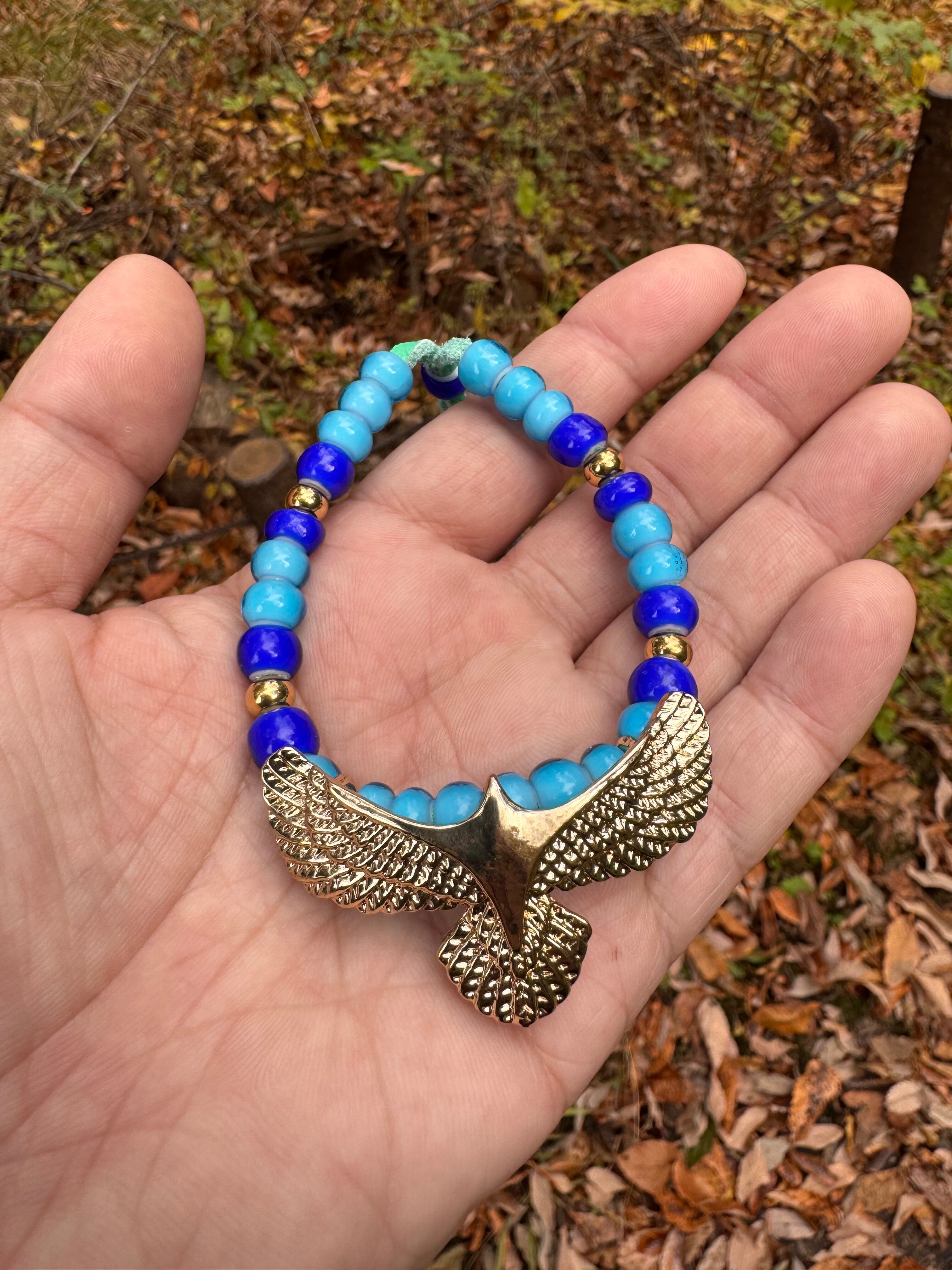 ★このブレスレットは、ネイティブアメリカンの文化を反映したデザインで、中心にイーグルモチーフを配置し、ホワイトハーツのビーズを使用したハンドメイドの特別なアイテムです!
