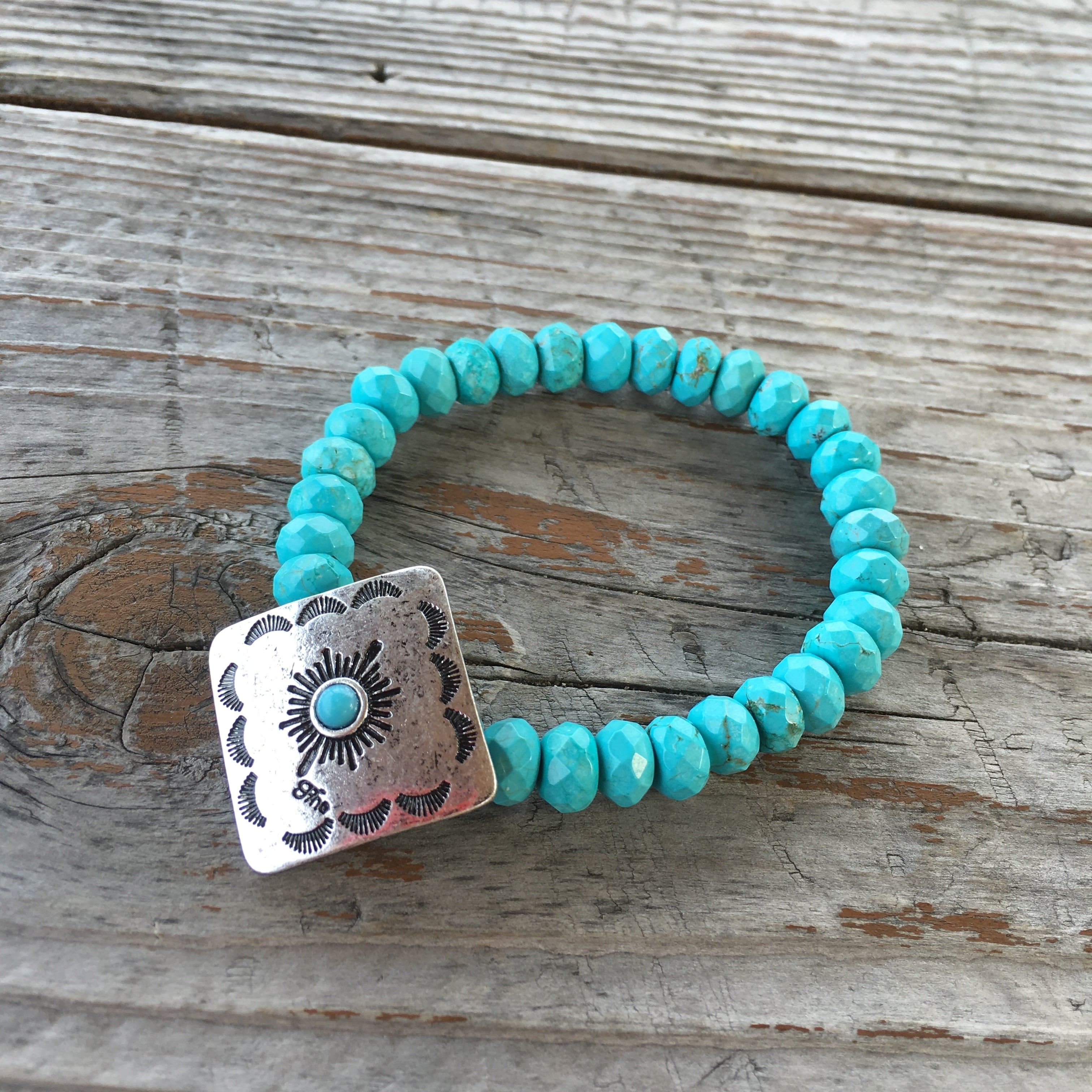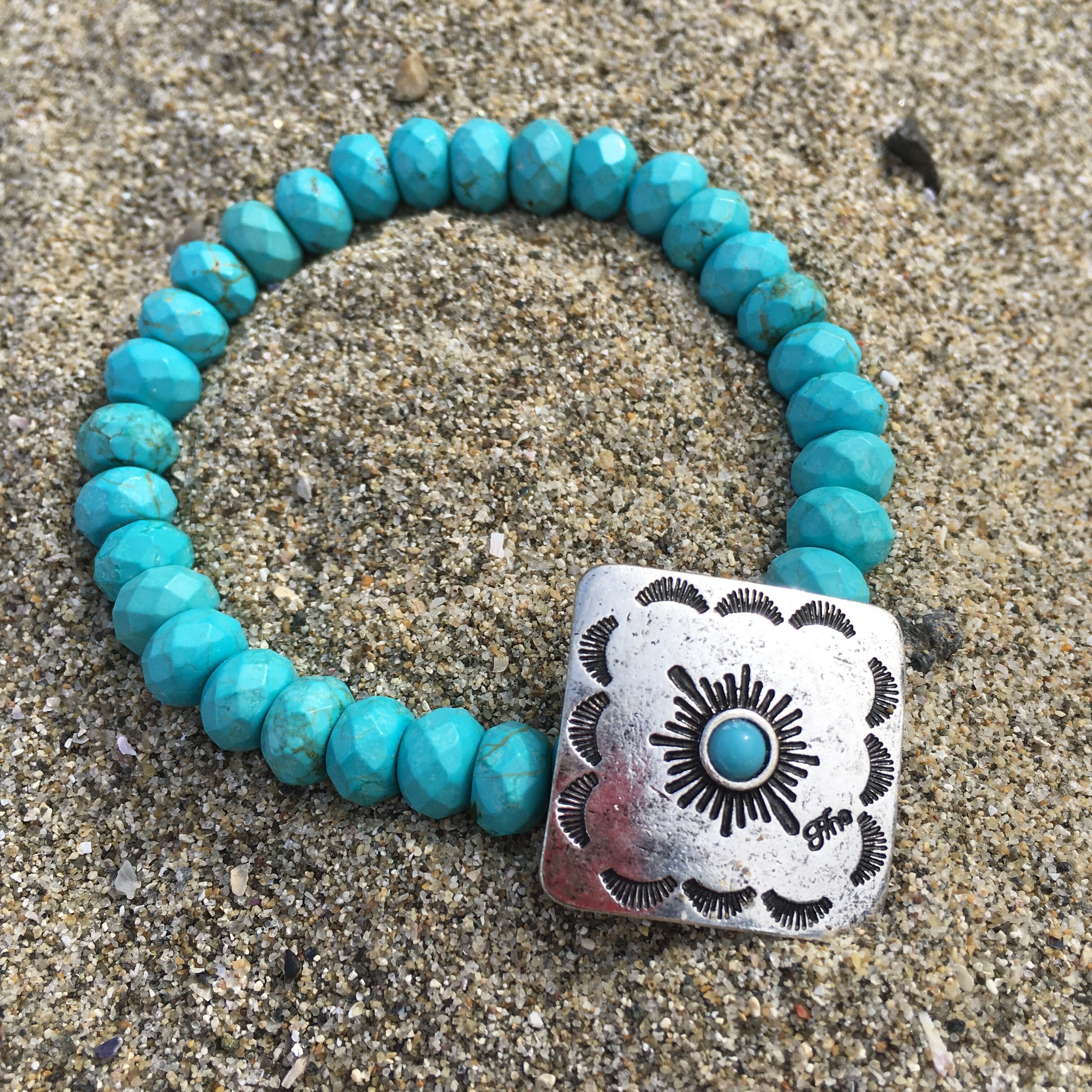 Square concho turquoise bracelet