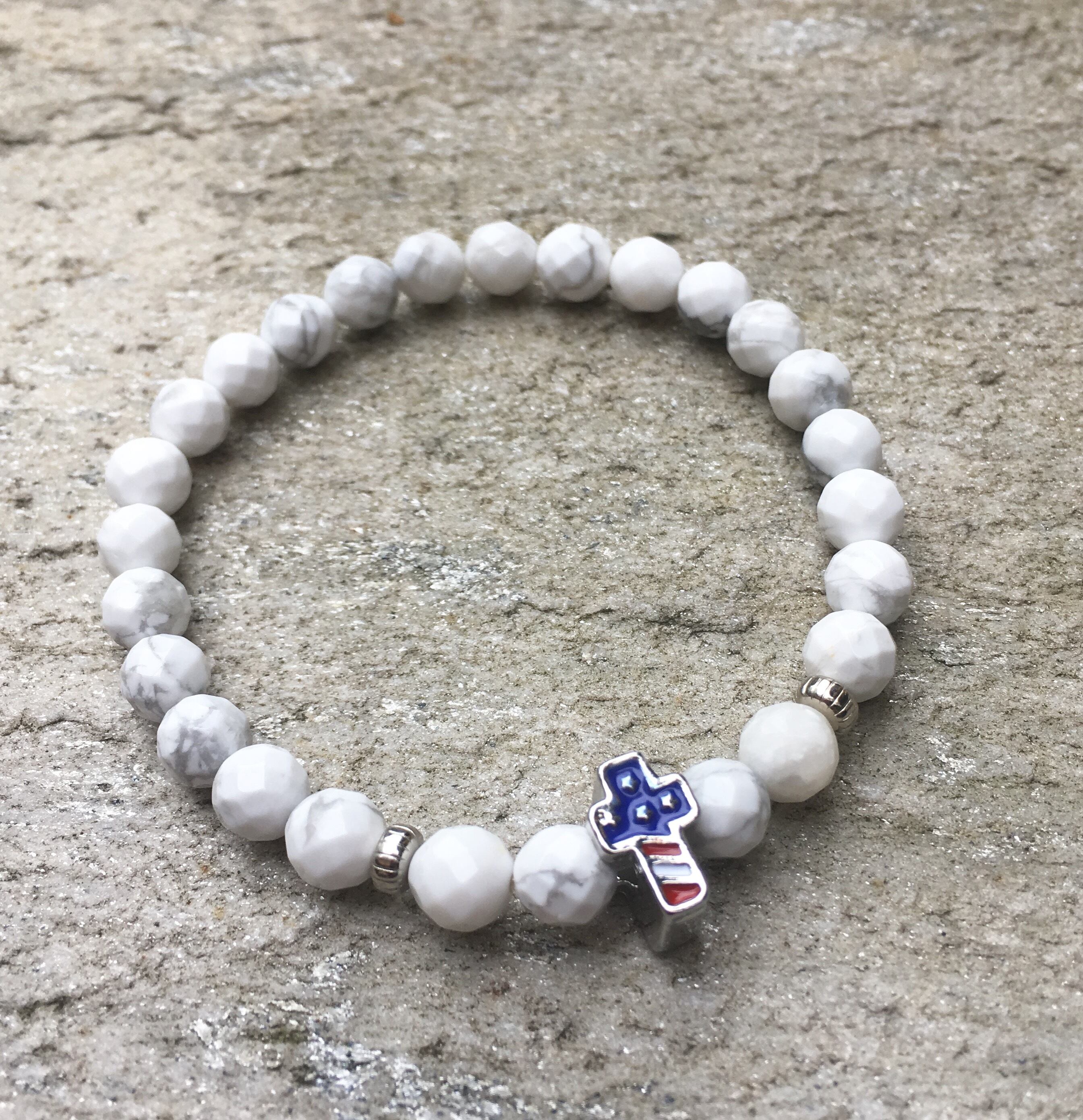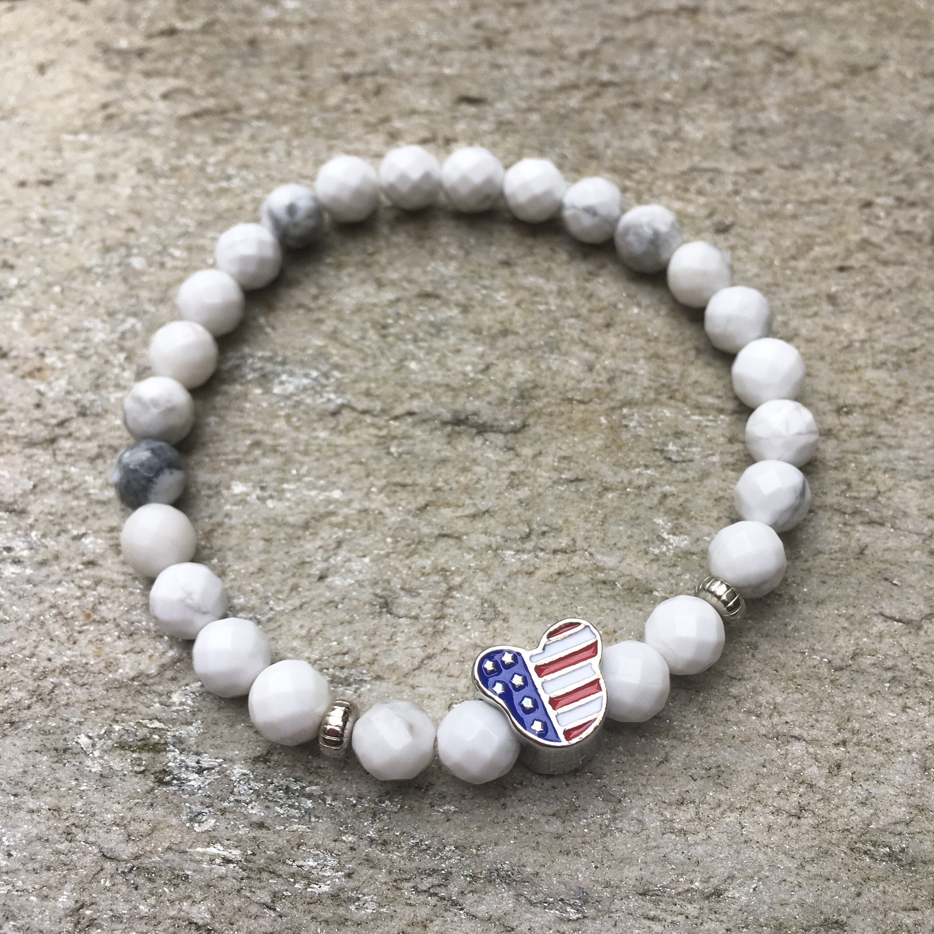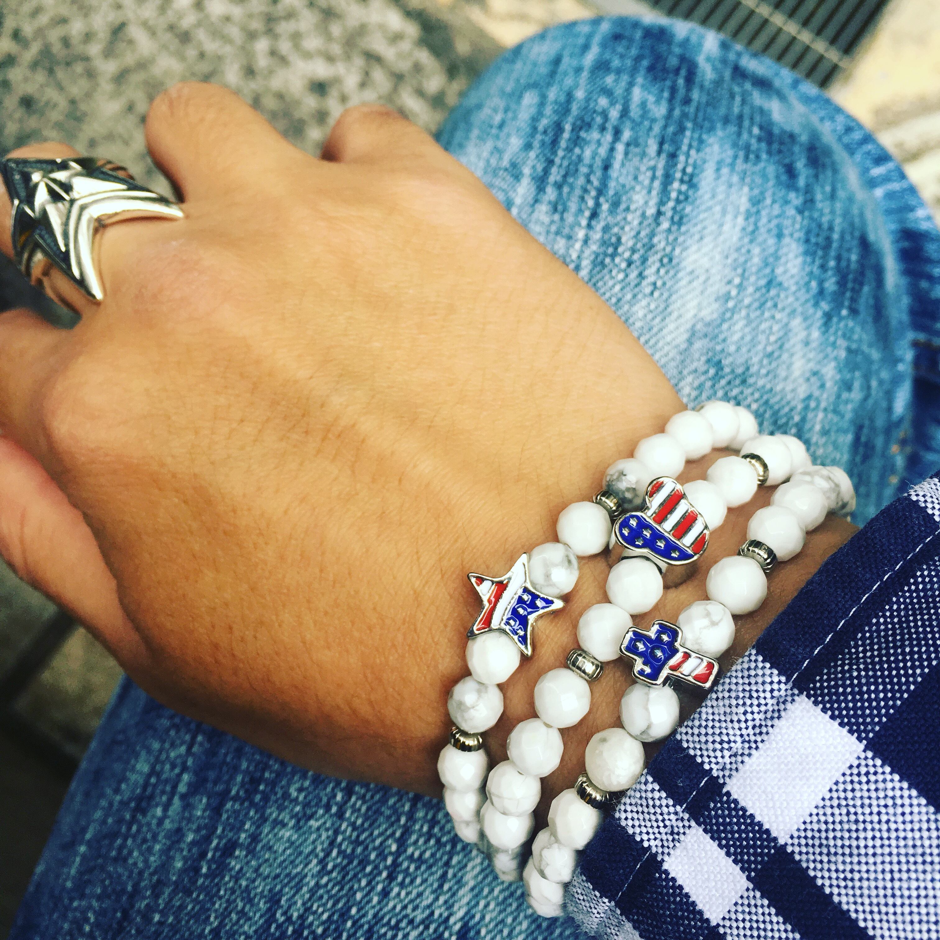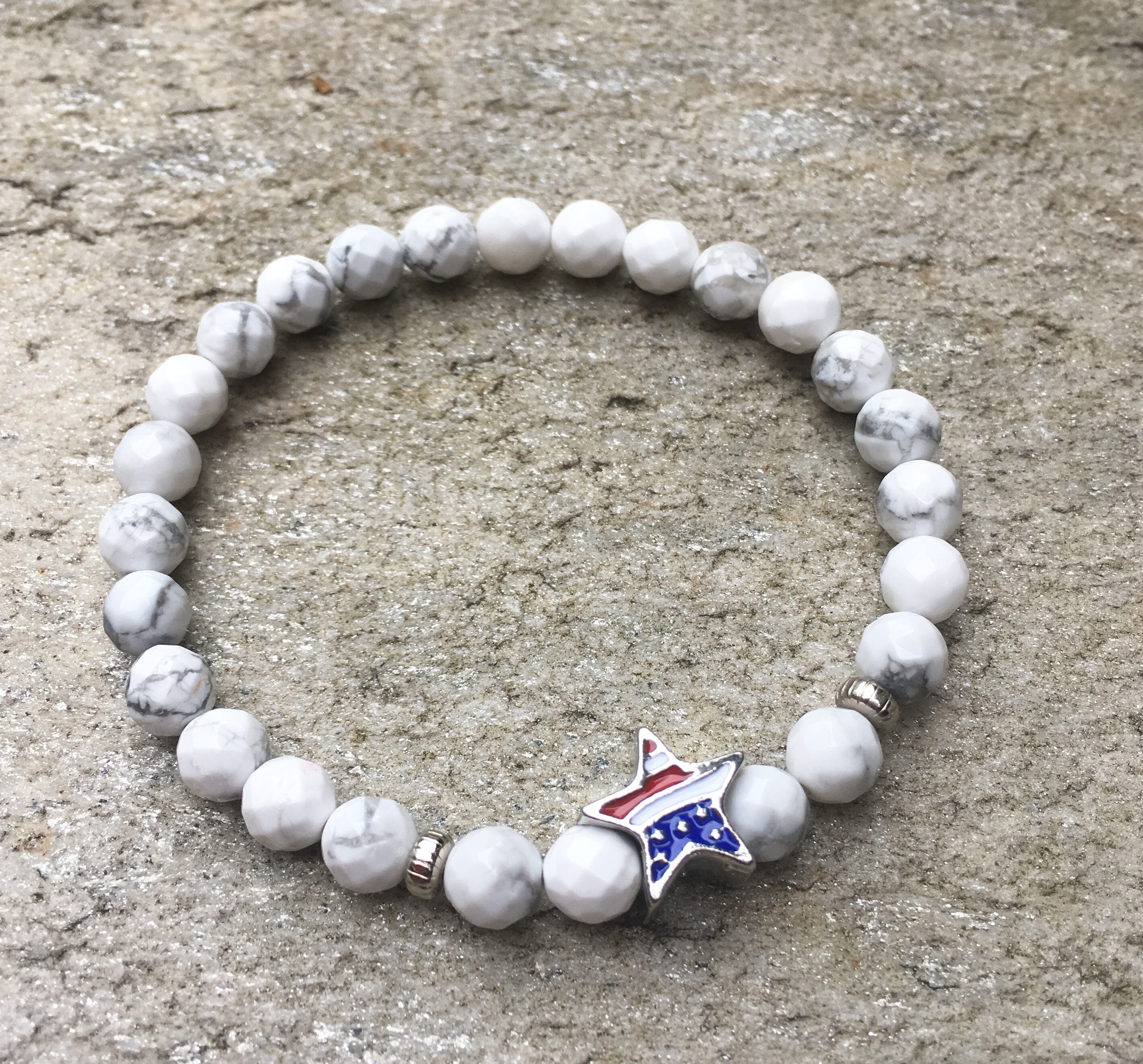 ○センターに星条旗モチーフをいれたハウライトブレスレットになります。
