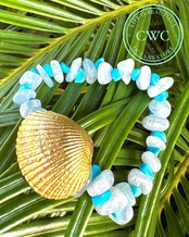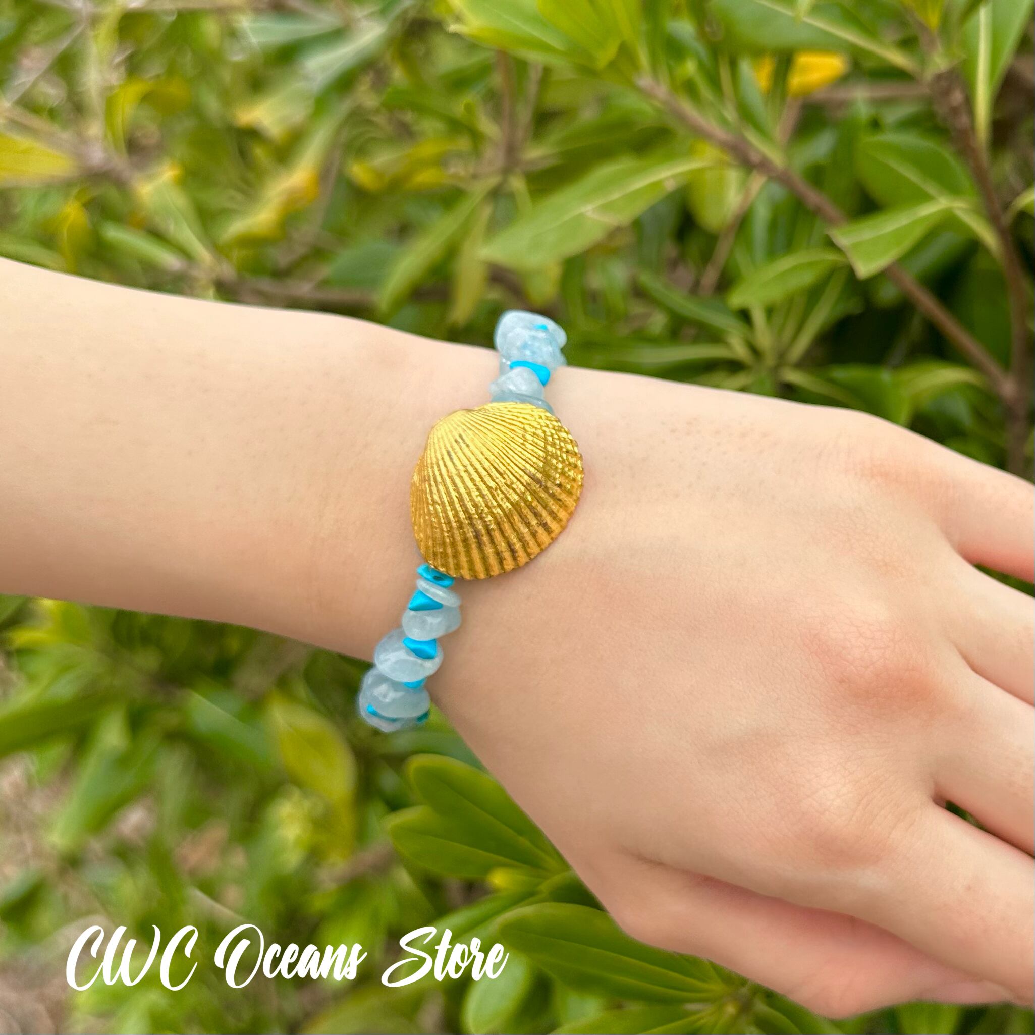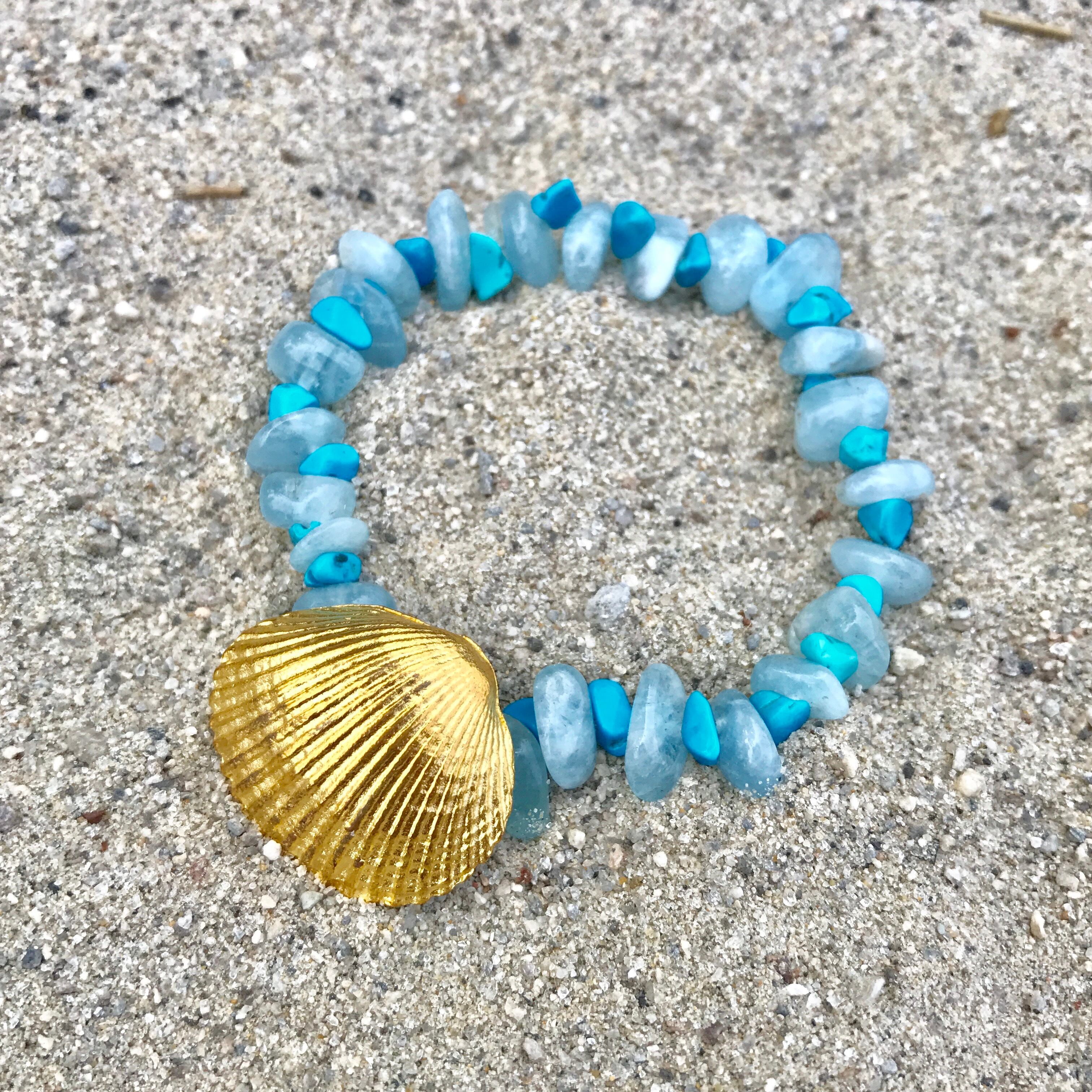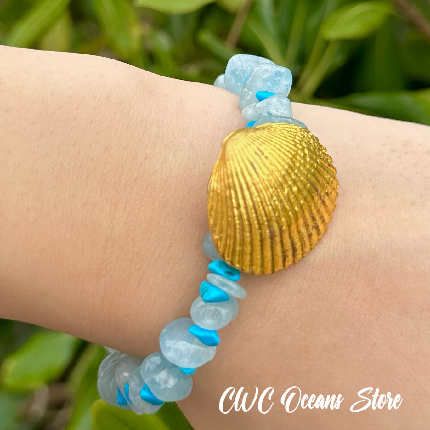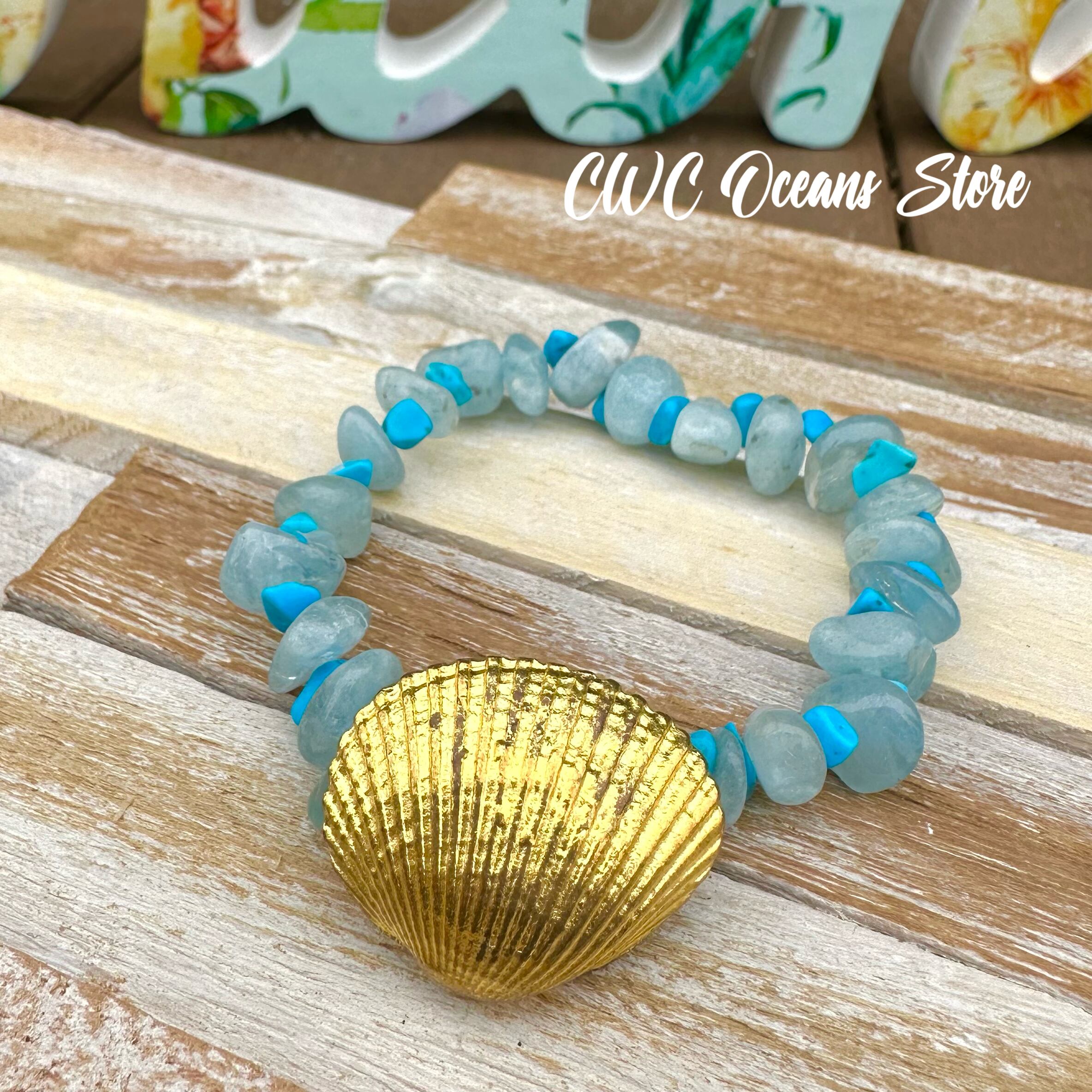 ★Natural Stone Shell Cocho Bracelet ~爽やかで美しい、特別なハンドメイドブレスレット❗️アクアマリンとターコイズの天然石を使用⭐︎