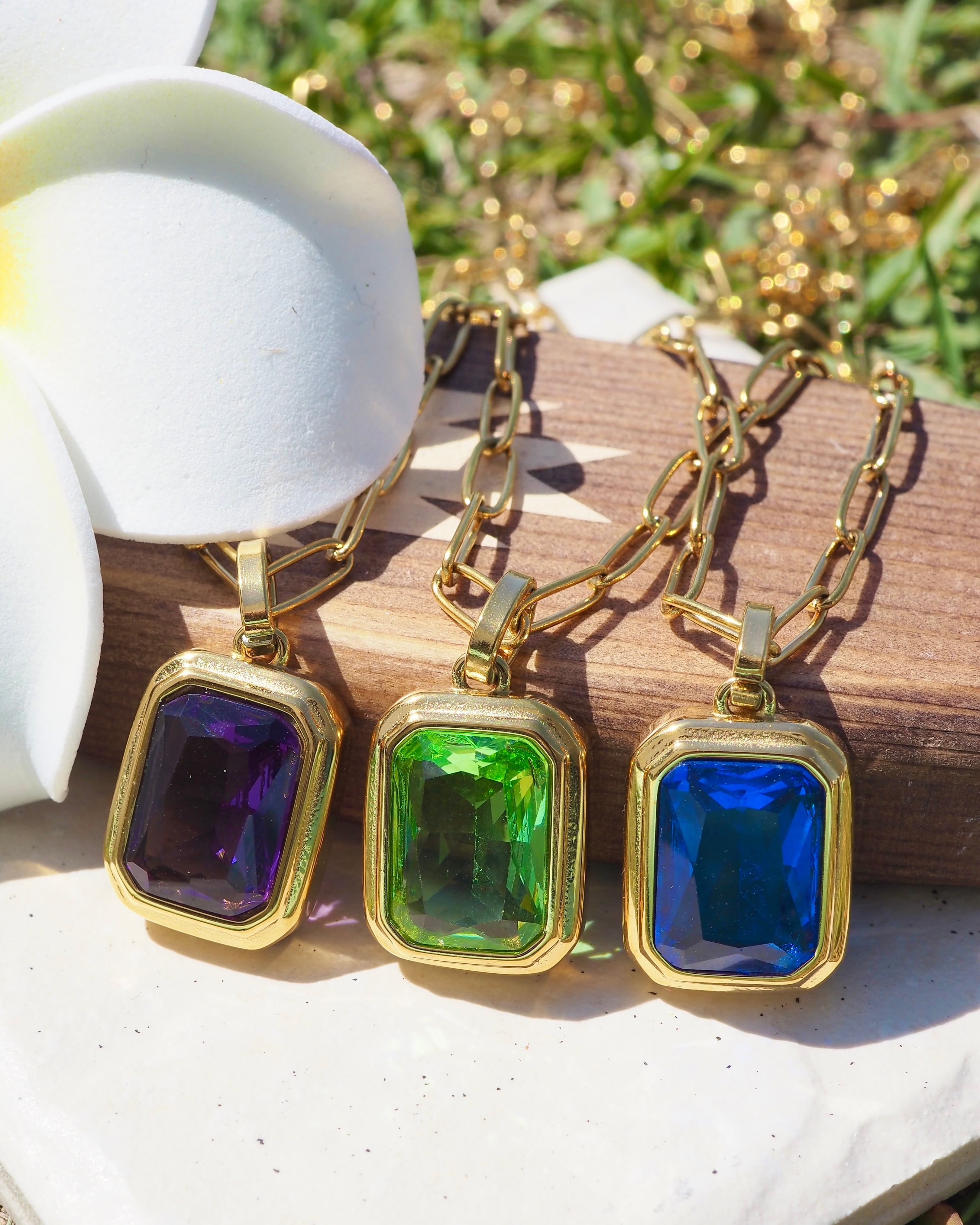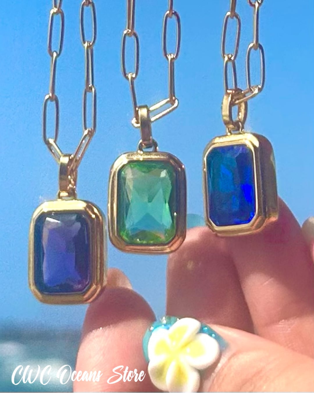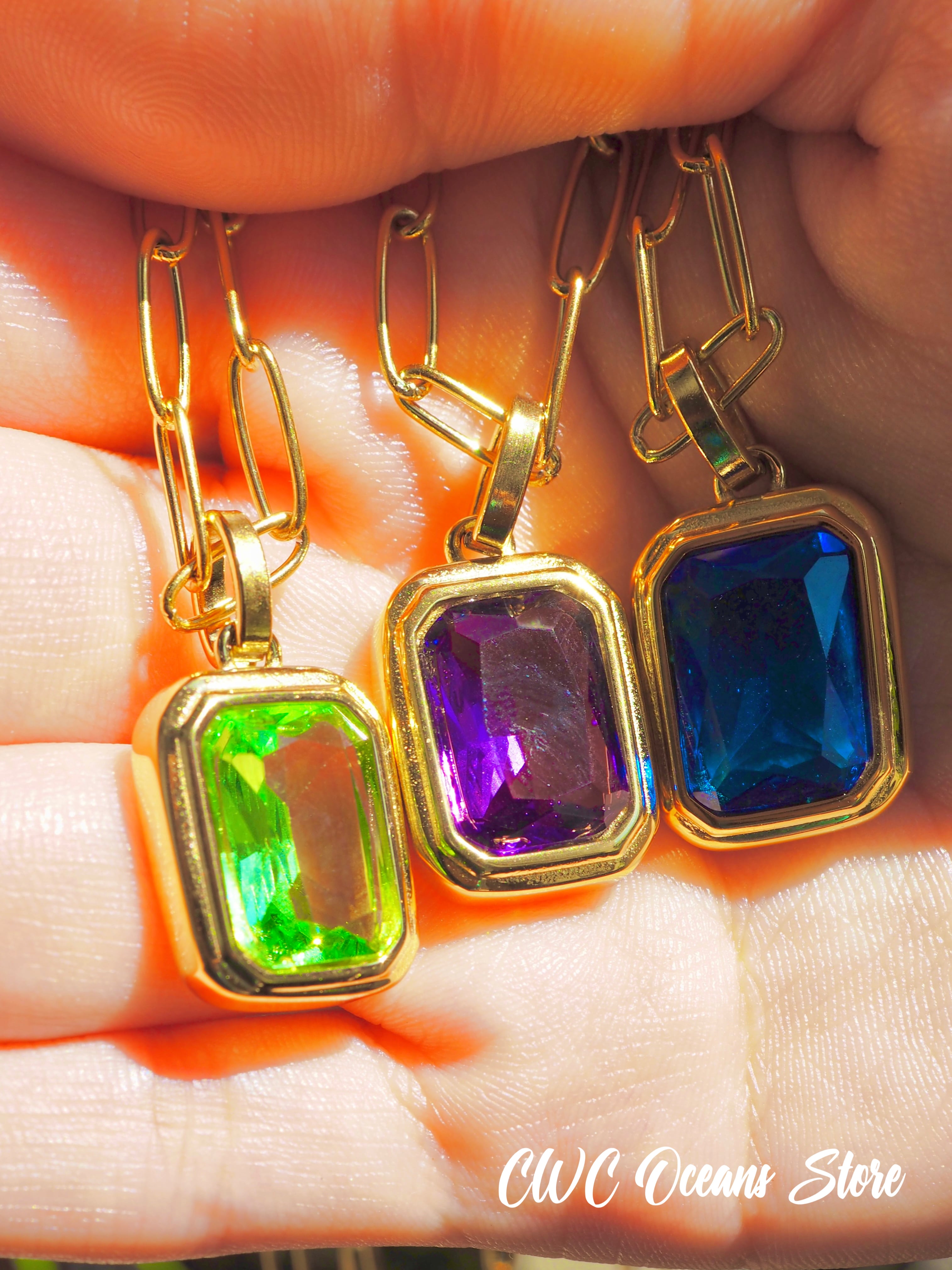 ☆Hawaiian candy color 〜ハワイ〜の虹や空や海の色をイメージして作られているキャンディを思わせる、カラフルなハワイ色のキュービックを使用して造られたネックレス☆スクエアのフォルムは一回り大きく,可愛さがいっぱいの(๑˃̵ᴗ˂̵)ネックレスに仕上りました❣️