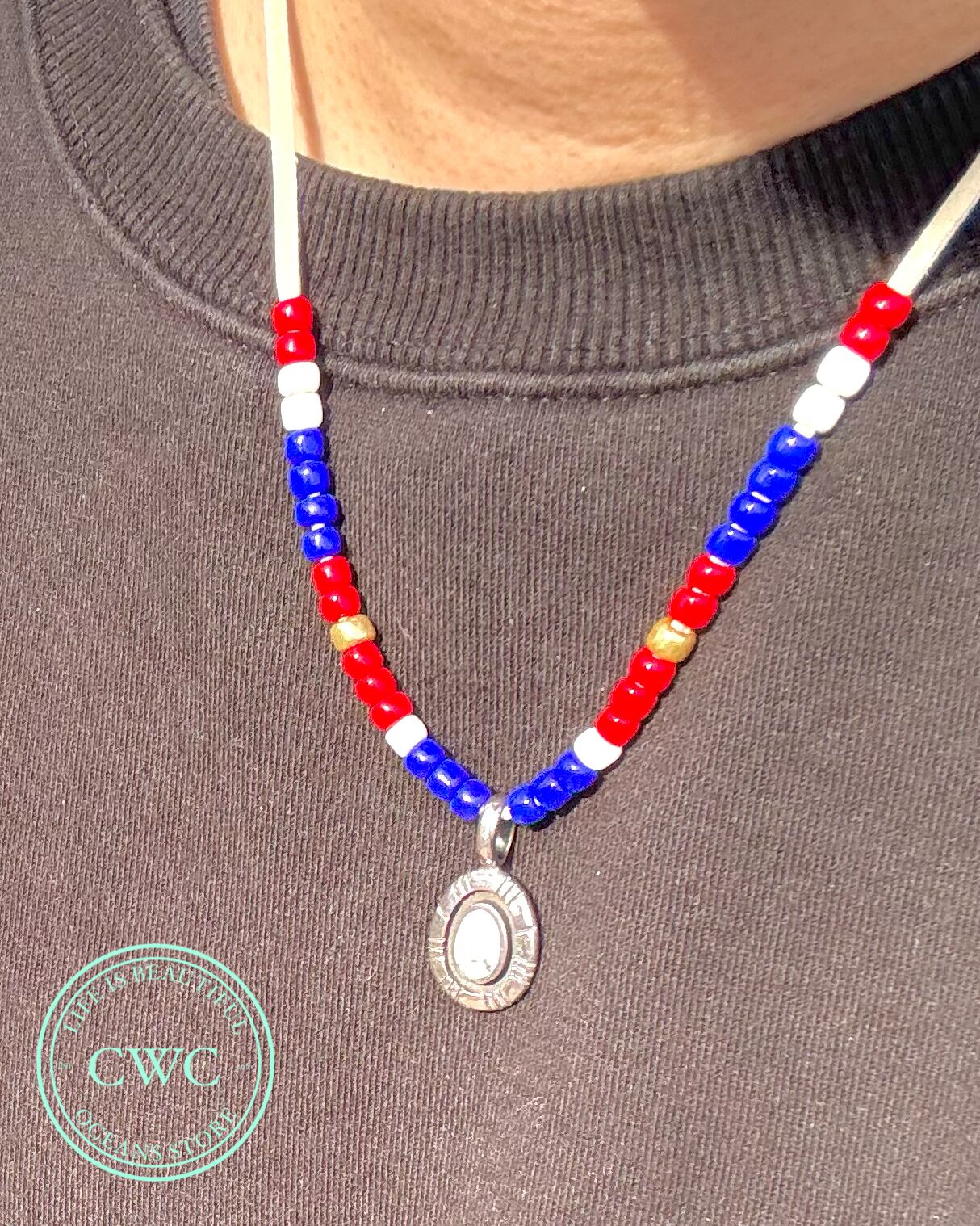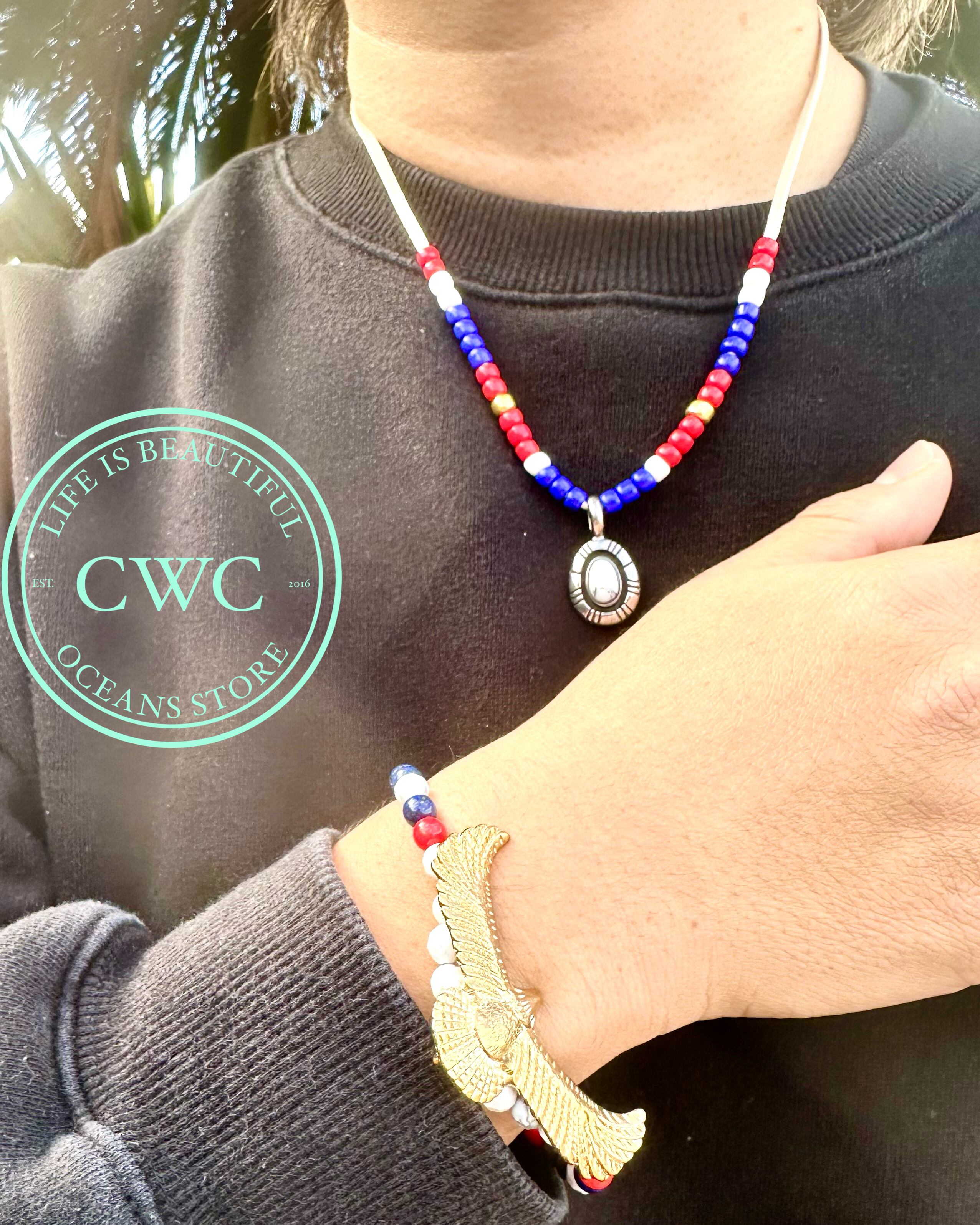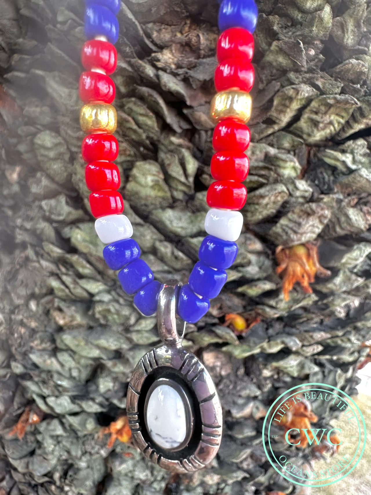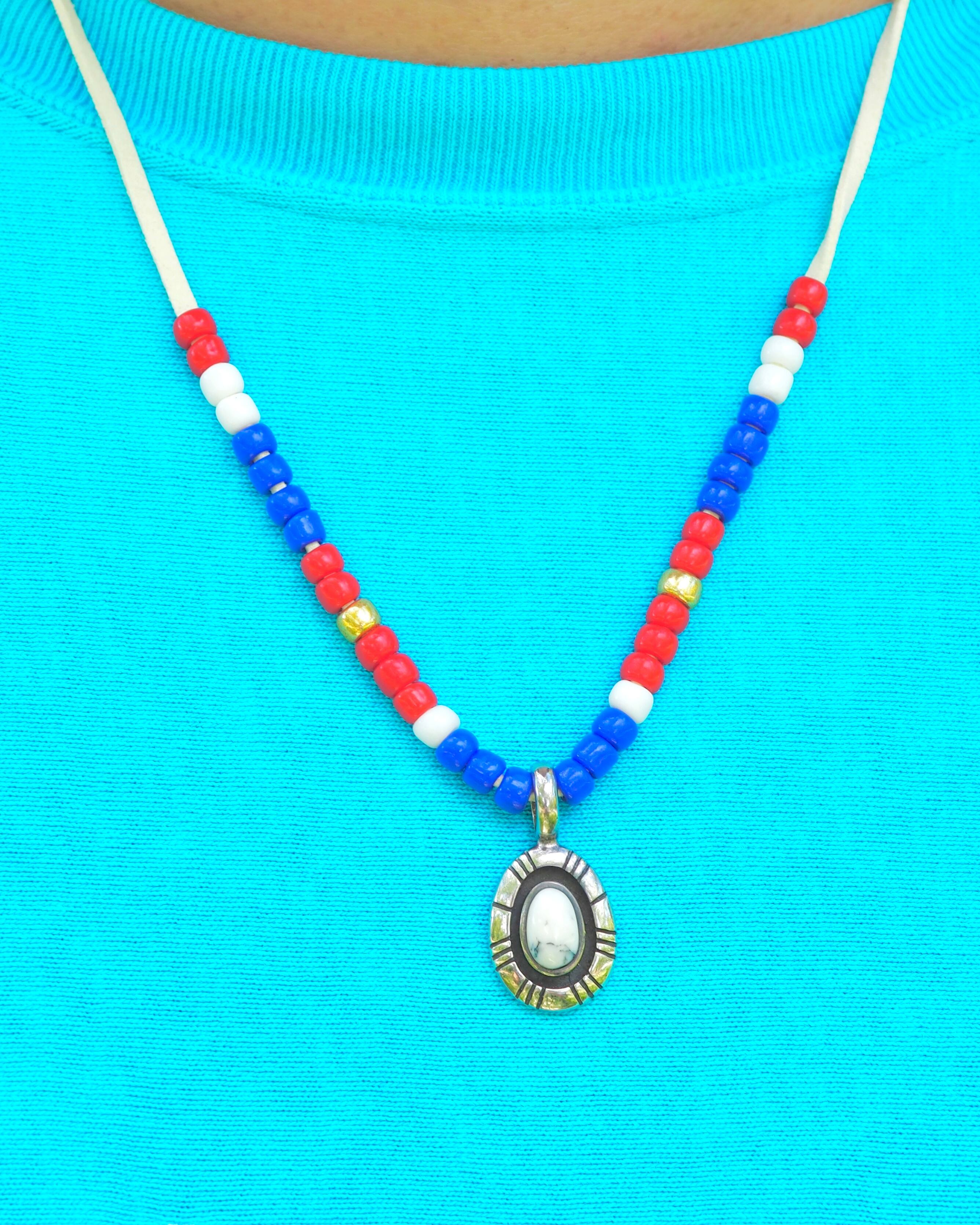 ・この素敵なWhite heartは、インディアンカラービーズを使用し、トップにはSV925で繊細に加工されたハウライトを中央にあしらった特別な逸品です★ビーズの色彩とハウライトの清らかな雰囲気が相まって、目を引く存在感を放ちます。シンプルなコーディネートから、カジュアルなお出かけスタイルまで、幅広くマッチします!